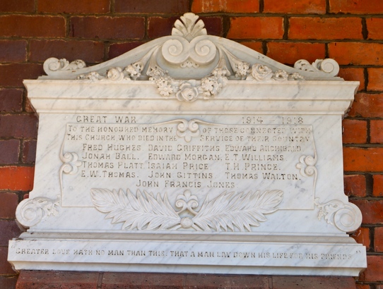 White Marble Group Memorial Rescued from unknown Church in 1990s Memorial is inside Hightown barrack in a covered alcove of Regimental HQ Royal Welsh. Brick plinth originally held an RWF Dragon Rampant statue that was commissioned for the Regiment's Terce - Taken by Nick Lock 02 Sep 2025