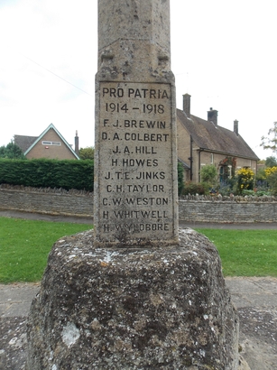 (WW1) F. J. BREWIN, D. A. COLBERT. J. A. HILL, H. HOWES, J. T. E. JINKS, C. H. TAYLOR, C. W. WESTON, H. WHITWELL, H. WYLDBORE. (WW2) E. ABBOTT.