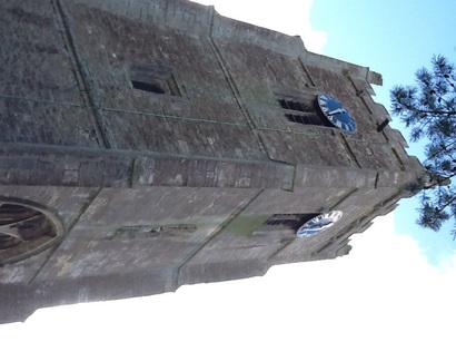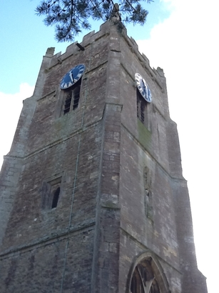 The North and west sides of the tower showing the clock faces - Taken by Young archaeologist club, North wilts branch 21 Feb 2015