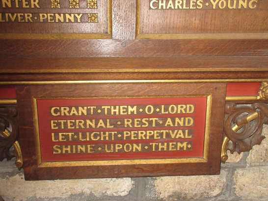 Remember ye before God in prayer and thanksgiving the men of Frome who died in the service of their country during the Great War 1914 . 1918 especially/names. Grant them O Lord eternal rest and let light perpetual shine upon them.