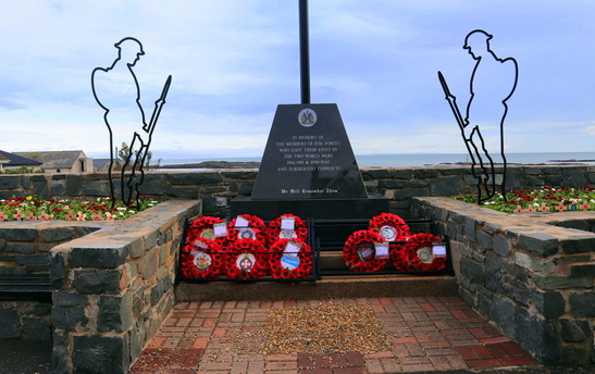 In memory of the members of HM Forces who gave their lives in the two world wars 1914-1918 and 1939-1945 and subsequent conflicts below this is the following `we will remember them`