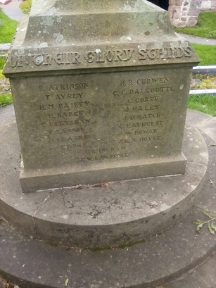 R. Atkinson, T. Ayrey, H.M. Bailey, H. Bargh, C. Brayshaw, F. Casson, A. Clarke, S. Clarke, H.B. Curwen, G.C. Dalgoutte, C. Gorst, J. Haley, J.D. Hatch, C. Hayhurst, W. Howat, J.S.A. Hoyle, A.L. Ingham, T.W. Lawrence, W.H. Kershaw, G. Langton, W.T. Nickson, W.H. Osborne, J. Parr, W. Parr, A. Pilkington, H. Pilkington, J.M. Singleton, R. Studdard, G.W.P. Swindlehurst, J.A. Sykes, F.J. Torkington, R.S. Warbrick, J.C. Wilshaw, T. Wood, F.J.A. Wyton, R. Lawrence.