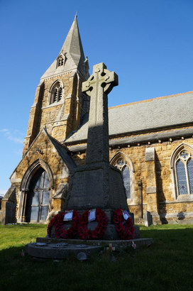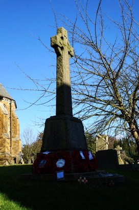Front: To the Glory of God /and to the immortal memory/of the Glorious Dead/connected with Binbrook, who/gave their lives for/King amd Country in the/ Great War, 1914-1919/and whose names are inscribed hereon/'Lest We Forget'/Names on sides/On lower base: And in memory of those who gave their lives in the War of 1939-1945/(Names on sides)