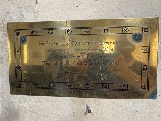 TO THE GLORY OF GOD AND IN MEMORY OF (2 NAMES) WHO FELL IN THE GREAT WAR 1914-1918 A.D FAITHFUL UNTO DEATH