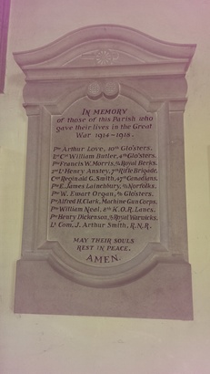 In memory of those of this Parish who gave their lives in the Great War 1914-1918 [Names] May their souls rest in peace. Amen.