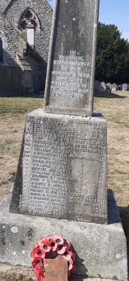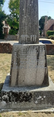 (1914-1918 – dashes represent ditto marks) Yeo of Sig Thos A Chambers R.N., Pte. Geo. Reg. Fox R.M.L.I., - Charles Parris R.G.A., Lt George K. Scott R.E., Pte Ernest F.B. Mears Grenadier Gds., - John T. Wyeth East Kent Regt, Lt Charles P.M. Irwin Royal Irish Fus., Pte Albert W. Garrett Devonshire Regt, - William R. Wyeth - - , Sgt J. Reg. Digweed. M.M. Hampshire Regt, Pte Edward J. Child - - , - Charles Cousins - - , - William J.Hale - - , - Bertie Holland - - , - William Kersley - - , - Wilfred G. Lipscombe - - , - Percy C. Mears - - , - James S. Moore - - , - William Taylor - - , - Frank E. Friend Essex Regt, - Gerald L Wickens Royal Berks Regt, Sgt J. Harris Marlow Rifle Brigade, Cpl Albert E. Brown - - , Rfmn Archie H.V. Mears - - , Pte F. John Lush 60th Bn Canadians, - A. William Lush - - (1939-1945) A/C Donald Balaam RAF, Sigmn Jack Dudman RCS, F/L John Falkiner RAAF, PO John Goldsmith RN, PO Horace Hill RN, L/C William Lush RFUS, Lt David Padfield R Warwick Regt, Sgt Bernard Phillips RAF, P/O John Weaver RAF