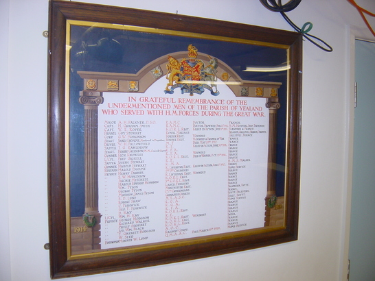 IN GRATEFUL REMEMBRANCE OF THE/ UNDERMENTIONED MEN OF THE PARISH OF YEALAND/ WHO SERVED WITH H.M.FORCES DURING THE GREAT WAR.