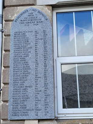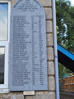 Angle Village Hall. Stone tablets left and right - Taken by N Chadwick (geograph) licensed for reuse under the Creative Commons License 28 Aug 2013