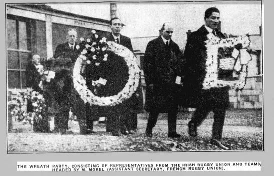 Representative from Ballymena RFC lays a wreath at the first wreath laying ceremony - Taken by Published in Larne Times Newspaper 30th January 1926 22 Jan 1926