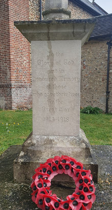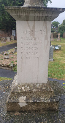 TO THE/ GLORY OF GOD/ AND IN/ HONOURED MEMORY/ OF THOSE/ WHO GAVE THEIR LIVES/ IN THE/ GREAT WAR/ 1914 – 1918. Sides: (Names) Rear: 1939 – 45/ (Names)