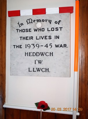 WW2 memorial plaque in the entrance lobby at the front of the hall - Taken by Mind Aberystwyth 20 Mar 2017