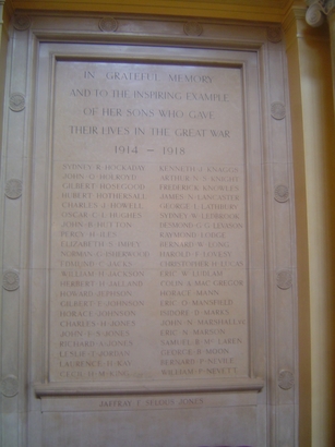 Birmingham University WW1 Memorial Plaques - Taken by Tony Woolley 27 Dec 2010