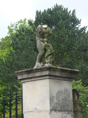 Right hand gate pillar showing damge to head of figure - Taken by J E S 28 Aug 2016
