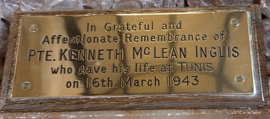 In Grateful and / Affectionate Remembrance of / PTE. KENNETH MCLEAN INGLIS / who gave his life at TUNIS / on 16th March 1943
