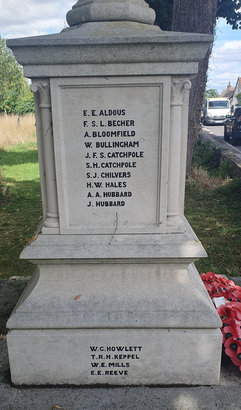 Dickleburgh war memorial - names on side face 1 - Taken by Helen Steed 14 Aug 2025