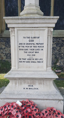 Inscription on Dickleburgh Suffolk War memorial - Taken by W. Butcher 28 Apr 2018