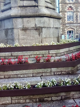 To the immortal honour of those of this town who gave their lives for King and Country in the Great Wars 1914 - 1918 1939 - 1945. This stone was laid by H.R.H Edward Prince of Wales & Duke of Cornwall May 25 1921.