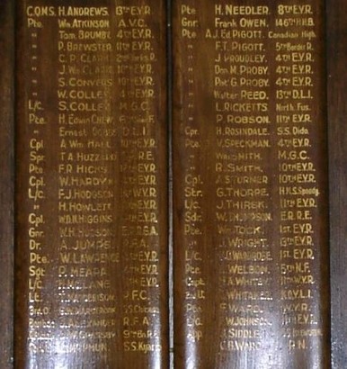 Clifton Roll of Honour (showing names - part 2) - Taken by permission of P.Coyle Snr. (Hull Ray) 02 Nov 2016