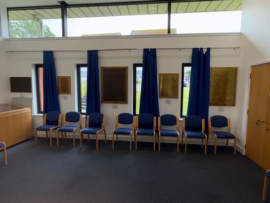 Memorial room at St Columba's. Memorial at centre of wall. - Taken by David Parmee 03 Aug 2025