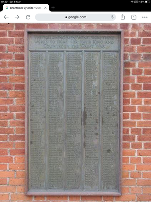 British xylonite Brantham war memorial - Taken by John Green 21 Feb 2021