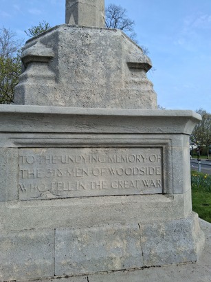Woodside WW1 memorial (close-up of inscription) - Taken by Alan Littell 20 Mar 2026