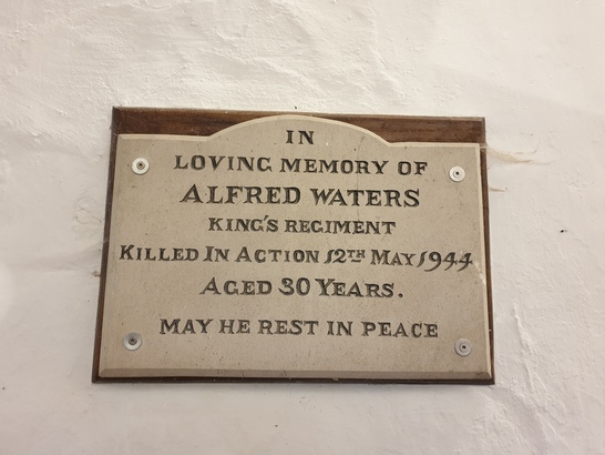 IN/ LOVING MEMORY OF/ ALFRED WATERS/ KING'S REGIMENT/ KILLED IN ACTION 12TH MAY 1944/ AGED 30 YEARS./ MAY HE REST IN PEACE