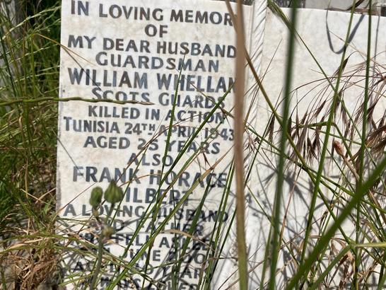 /IN LOVING MEMORY/OF/MY DEAR HUSBAND/GUARDSMAN/WILLIAM WHELLAN/SCOTS GUARDS/KILLED IN ACTION/TUNISIA 24TH APRIL 1943/AGED 25 YEARS/...