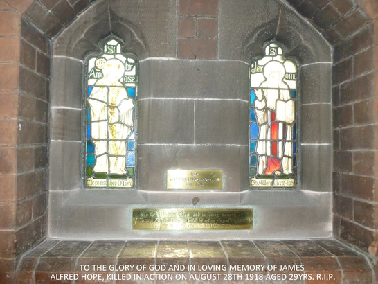 To the Glory of God and in Loving Memory of James Alfred Hope, Killed in Action on August 28th 1918 aged 29 years RIP