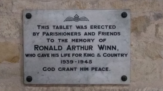“This tablet was erected by parishioners and friends to the memory of Ronald Arthur Winn, who gave his life for King and Country, 1939-1945. God grant him peace.”