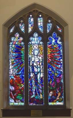 Stained glass window, Christ Church Charnock. The WW2 memorial plaque is beneath the window - Taken by David Long 08 Apr 2018