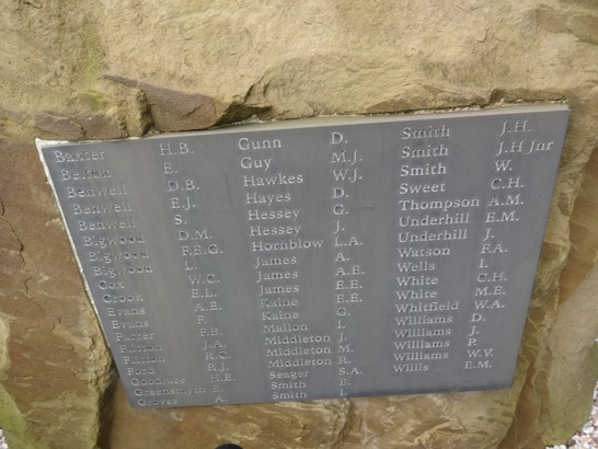 [column 1] Baxter H.B. Belton E. Benwell D.B. Benwell E.J. Benwell S. Bigwood D.M. Bigwood F.E.G. Bigwood L. Cox W.C. Crook E.L. Evans A.E. Evans F. Farrer F.B. Flitton J.A. Flitton R.C. Ford R.J. Goodlace H.E. Greensmyth E. Groves A. [column 2] Gunn D. Guy M.J. Hawkes W.J. Hayes D. Hessey G. Hessey J. Hornblow L.A. James A. James A.E. James E.E. Kaine E.E. Kaine G. Mallon I. Middleton J. Middleton M. Middleton R. Seager S.A. Smith E. Smith I. [column 3] Smith J.H. Smith J.H Jnr Smith W. Sweet C.H. Thompson A.M. Underhill E.M. Underhill J. Watson F.A. Wells I. White C.H. White M.E. Whitfield W.A. Williams D. Williams J. Williams P. Williams W.V. Willis E.M.
