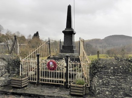 COFEB CWRONIAID Y RHYFEL MAWR/ 1914 BU FARW 1918/ (6 NAMES)/ "ARWTDD FOD CLOD Y DEWRION I FYW/ BYTH QUI'R GO FEB HON"
