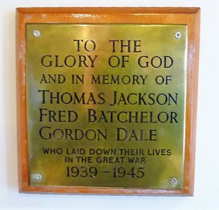 TO THE/GLORY OF GOD/AND IN MEMORY OF/[names]/WHO LAID DOWN THEIR LIVES/IN THE GREAT WAR/1939-1945
