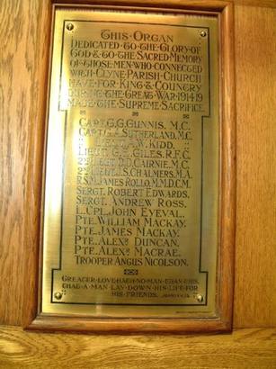 Clyne Parish Organ plaque. Date of photo estimated. - Taken by Bill O'Brien on Scottish War Memorials Project website 01 Jul 2005