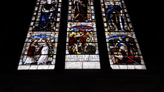 To the Glory of God in memory of the/ Staffordshire Yeomen and Volunteers/ who fell in the war in South Africa 1901 - 2./ (Names)
