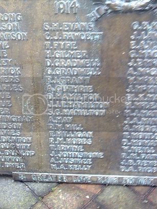 TO THE GLORY OF GOD AND IN MEMORY OF THE/MEN OF THIS CHURCH/WHO GAVE THEIR LIVES IN THE GREAT WAR/1914 1920/[names in 4 columns]/GREATER LOVE HATH NO MAN THAN THIS