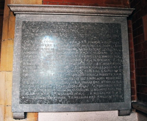 TO THE GLORY OF GOD / AND IN MEMORY OF THOSE FROM THIS PARISH WHO GAVE / THEIR LIVES FOR THE EMPIRE IN THE GREAT WAR 1914-1918 (Names)