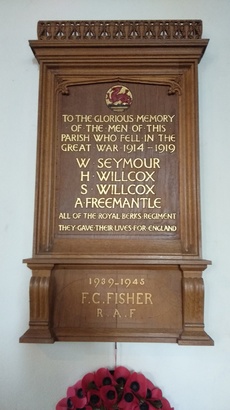TO THE GLORIOUS MEMORY/ OF THE MEN OF THIS/ PARISH WHO FELL IN THE/ GREAT WAR 1914 - 1919/ (Names)/ ALL OF THE ROYAL BERKS REGIMENT/ THEY GAVE THEIR LIVES FOR ENGLAND/ 1939 - 1945/ (Name)
