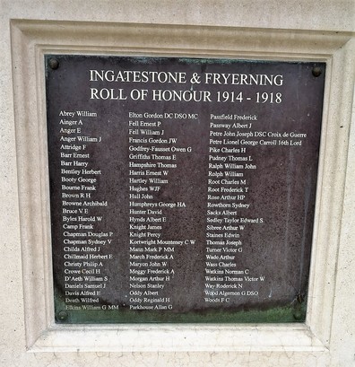 Ingatestone & Fryerning War Memorial Roll of Honour WWI - Taken by Paul Jones 24 Oct 2020