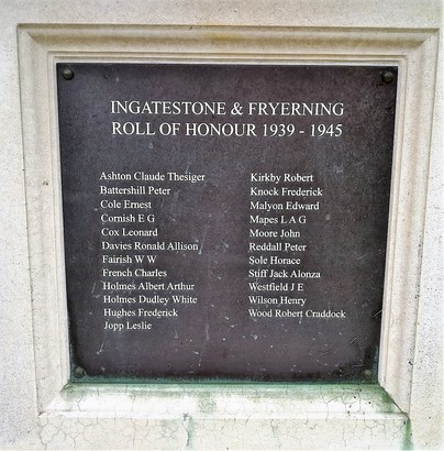 Ingatestone & Fryerning War Memorial Roll of Honour WWII - Taken by Paul Jones 24 Oct 2020