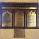 Upper Plaque: TO THE IMMORTAL MEMORY OF THE MEN OF THIS PARISH WHO SERVED IN THE GREAT WAR 1914-1918. / SOME FELL IN BATTLE SOME DIED OF WOUNDS AND SICKNESS BUT ALL NOBLY DID / THEIR DUTY DEFENDING THEIR KING AND COUNTRY. / Left plaque: Emblem "IHS" / (Names of survivors)// Centre Plaque: Cross / (Names of dead) / (Names of Survivors) // Right plaque: Emblem "IHS" / (Names of survivors) //