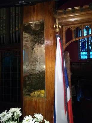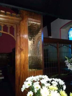 On each plaque: THIS CHANCEL SCREEN/ IS ERECTED TO THE GLORY OF GOD AND/ TO THE MEMORY OF THOSE WHO FELL/ IN THE GREAT WAR/ 1914-18
