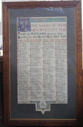 PERPETUAL/THE NAMES OF THOSE/MEN WHO LEFT THIS/PARISH of NAYLAND to serve their/Country in the World War 1914-1918/(Names)//