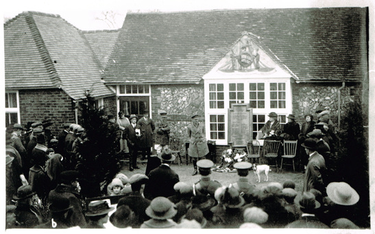 The oak roll of honour, seen in the December 1920 photo, records the names of those who lost their lives in the First World War is now sited on the wall of the Committee Room in the new Village Hall.