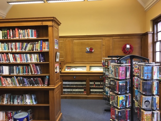 View of War Memorial Library with display cases - Taken by The Latymer Foundation at Edmonton 11 Oct 2018