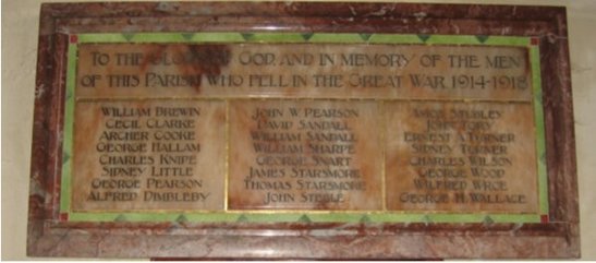 “To the Glory of God and in memory of the men of this parish who fell in the Great War 1914 – 1918” (Here follows the names)