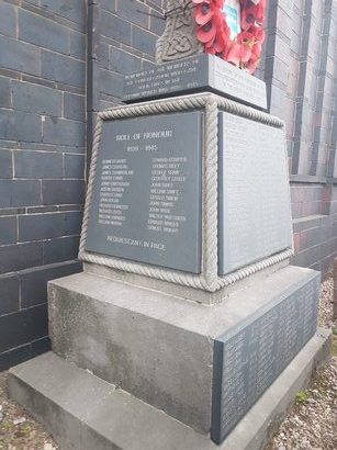 IN MEMORY OF THE MEMBERS OF THE / CONGREGATION WHO GAVE THEIR LIVES / IN THE GREAT WAR 1914 – 1918 and IN MEMORY OF THE MEMBERS OF / THE CONGREGATION WHO GAVE / THEIR LIVES IN THE / SECOND WORLD WAR 1939 - 1945 / ROLL OF HONOUR