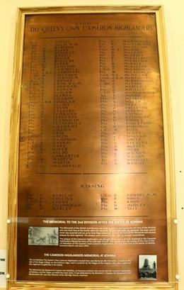 1st BATTALION / THE QUEEN'S OWN CAMERON HIGHLANDERS / (83 names) / MISSING / (10 names) / (information section)