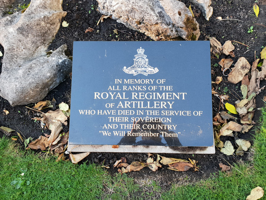 In memory of all ranks of the Royal Regiment of Artillery who have died in the service of their Sovereign and their Country "We Will Remember Them".