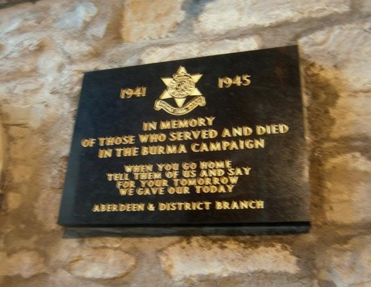 1941 1945/IN MEMORY/OF THOSE WHO SERVED AND DIED/IN THE BURMA CAMPAIGN/WHEN YOU GO HOME/TELL THEM OF US AND SAY/FOR YOUR TOMORROW/WE GAVE OUR TODAY/ABERDEEN & DISTRICT BRANCH